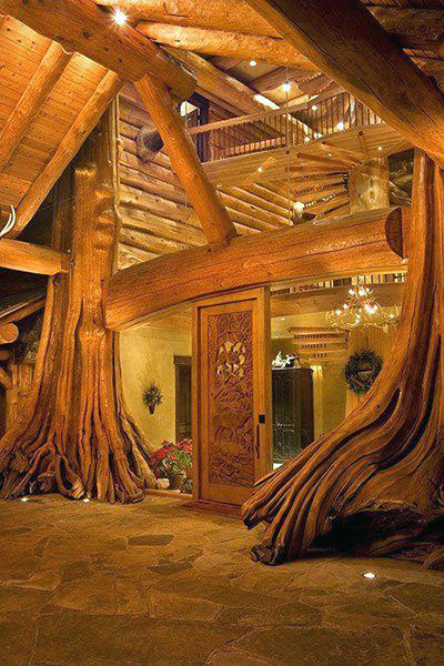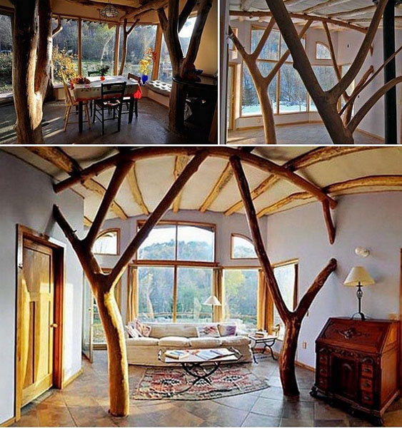 A nappali közepén egy gyökeres cédrus.